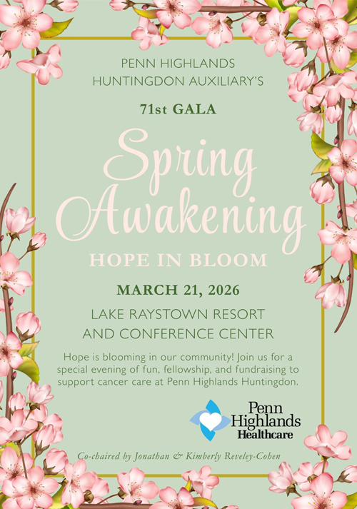 ENTRIKEN: An evening of elegance, community, and purpose is planned this spring as the Penn Highlands Huntingdon Auxiliary hosts its 71st Annual Gala, themed “Spring Awakening: Hope in Bloom.” The for...